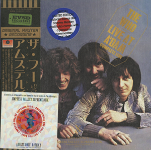 Comments: Red and blue vinyl. Claims to be a recording of a New York radio broadcast. Sounds pretty good. This is (2) two LP's with (3) three sides of music. The fourth side (look carefully) is an etching of Roger Daltrey.